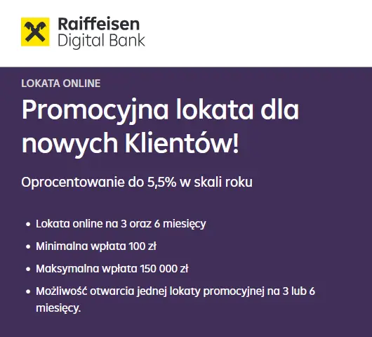 Lokata Dla Ciebie – 5,5% na 3 Miesiące Raiffeisen Digital Bank